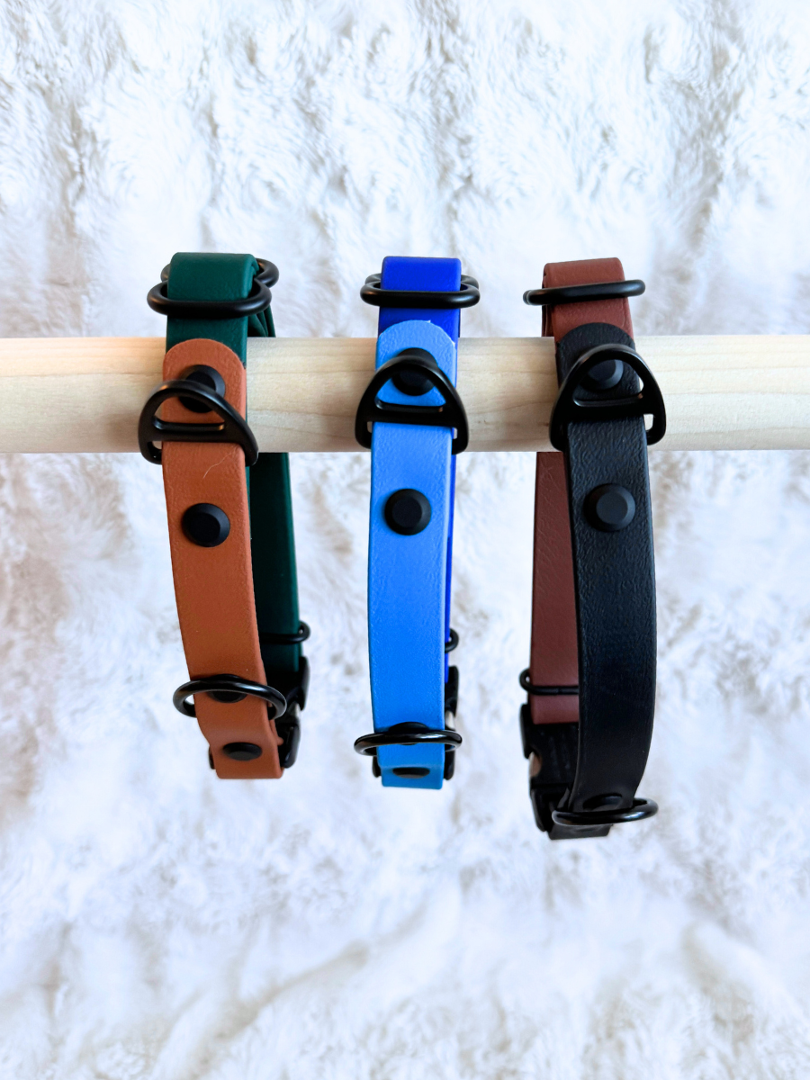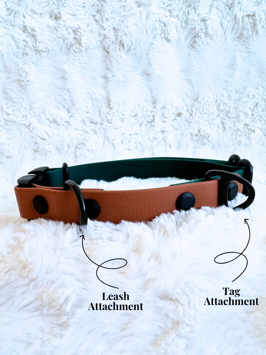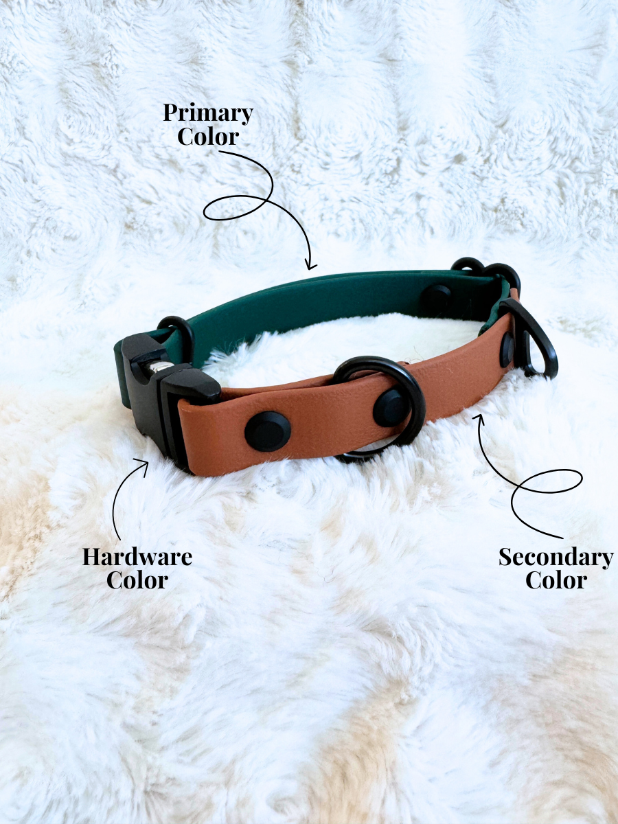 This custom waterproof two-toned quick-release collar is great for any adventure you can think of, especially for those that like to get muddy/dirty or swim in water!